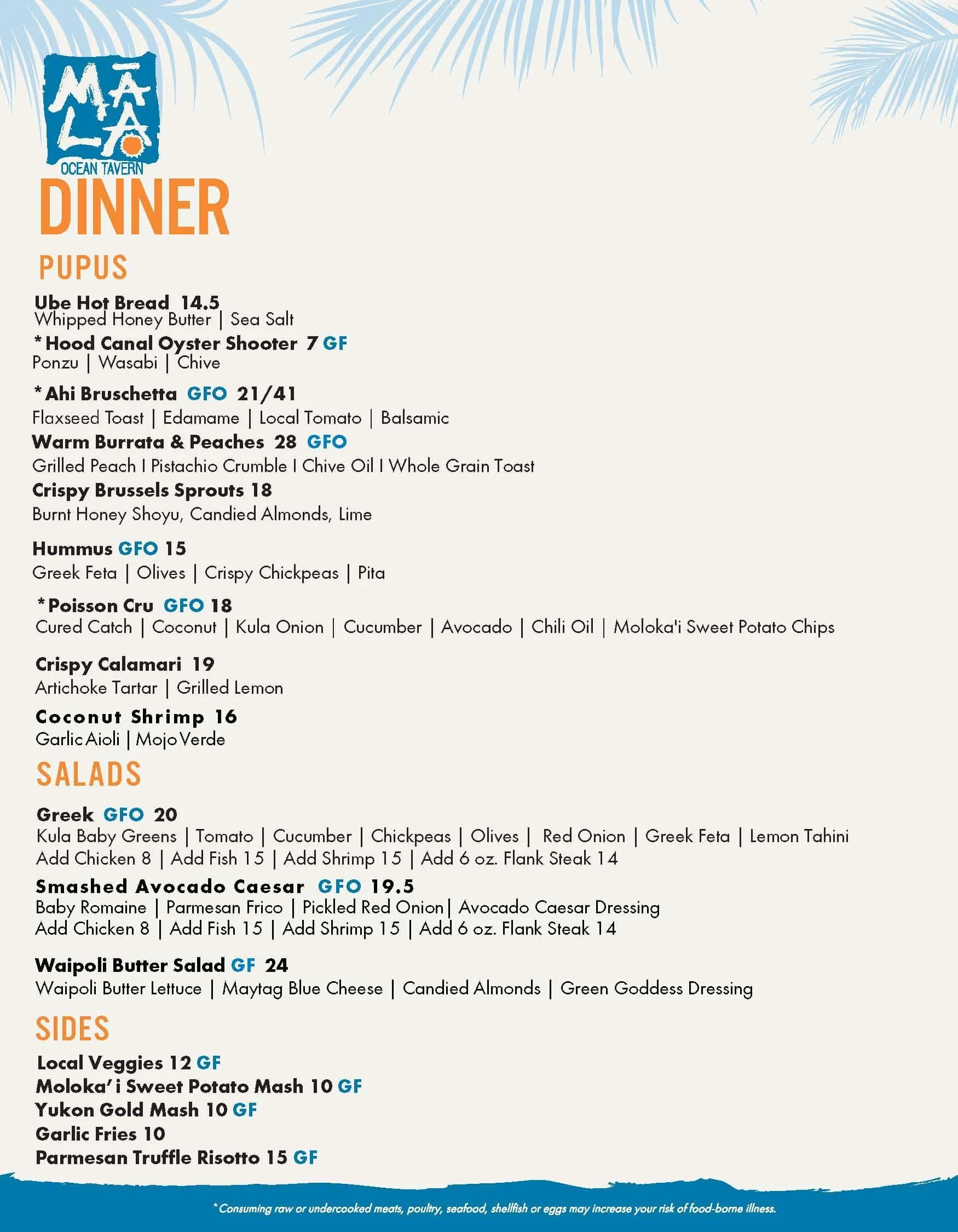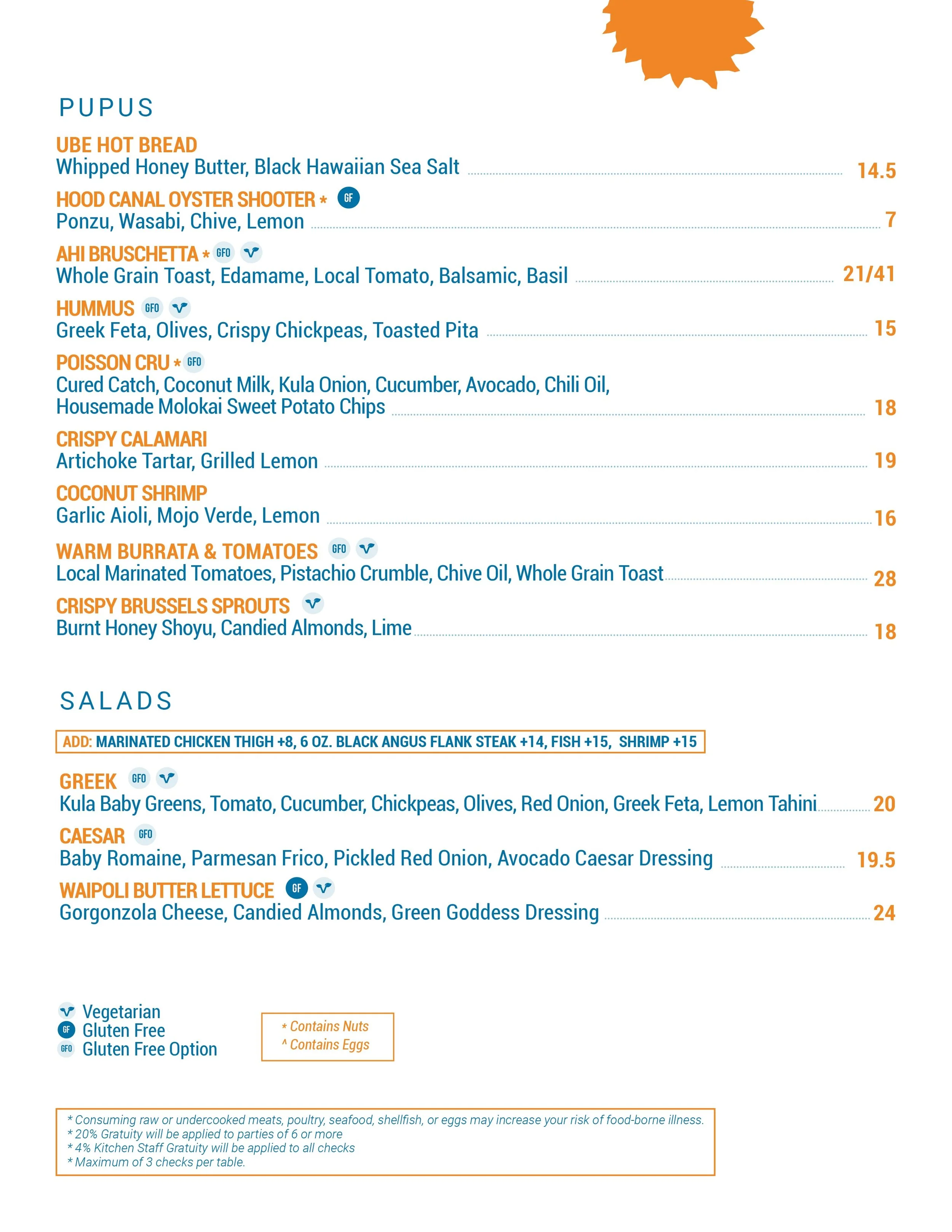Dinner MENUDinner 4-9pBrunch Menu| Drinks Menu | Wine & Spirits | Happy Hour | Kid’s Menu | I Caught The Fish Kid's Menu