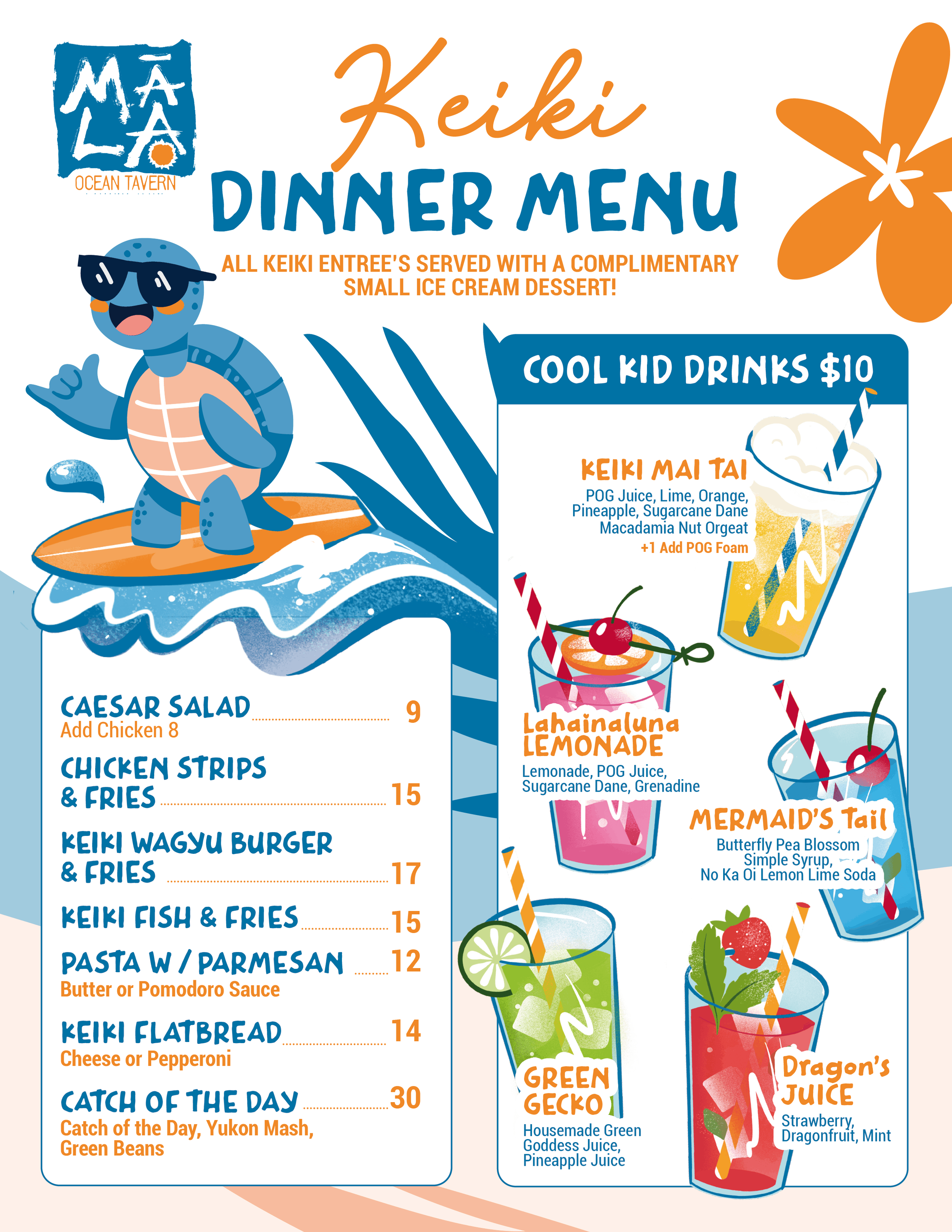 KidsBrunch Menu| Drinks Menu | Wine & Spirits | Happy Hour | Kid’s Menu | I Caught The FishScroll Down for Kid’s Dinner Menu