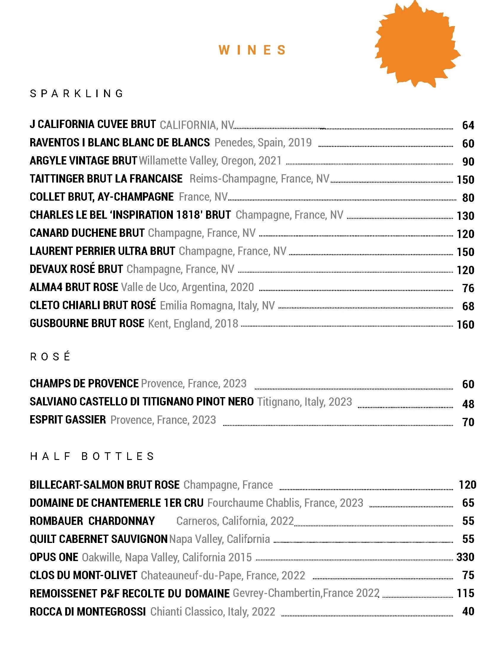WineBrunch Menu| Drinks Menu | Happy Hour | Dinner Menu |Kid’s Menu | I Caught The Fish SEE THIS MONTH'S SOMM SELECTIONS!
